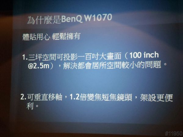 ▲以下2張是BenQ W1070特點整理,並且這是目前全球第一台家用消費機種中加入垂直短軸鏡頭的投影機