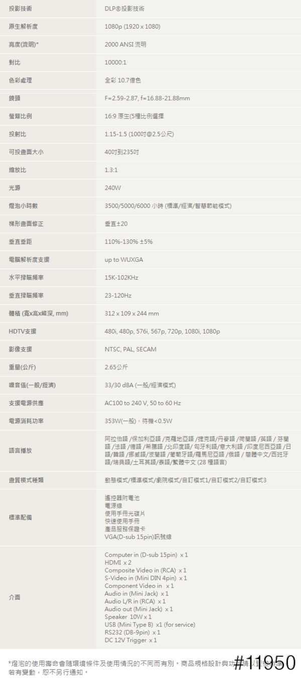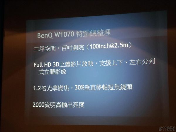 ▲一張圖片清楚的說明W1070的特色和規格