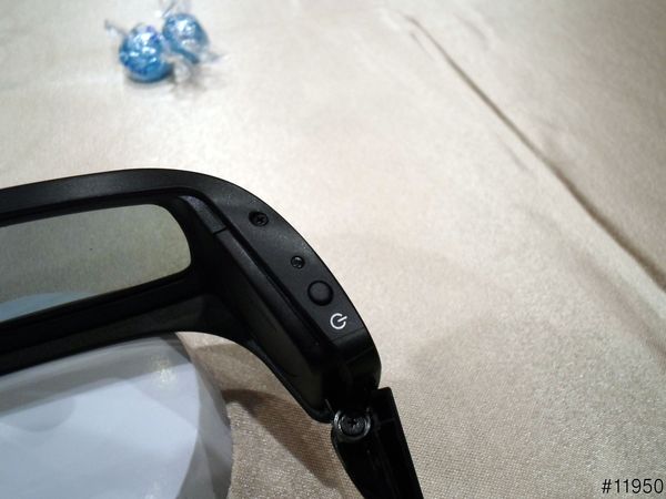 ▲3D眼鏡側面,因使用主動快門式3D技術所以和一般3D眼鏡不相容
