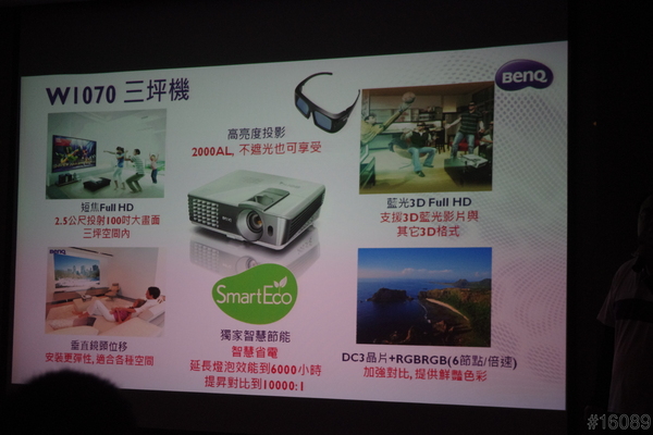 ▼首先,這就是今天的重頭戲,短焦Full HD藍光劇院投影機W1070+全新3D眼鏡(BenQ真是台灣之光!!!)