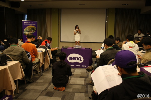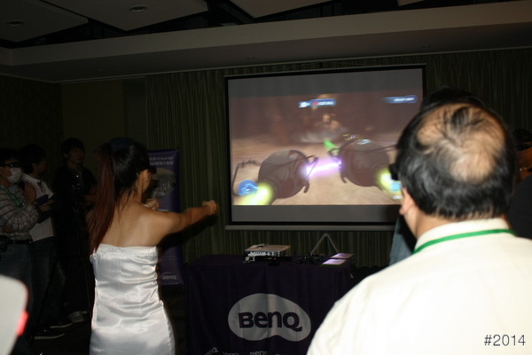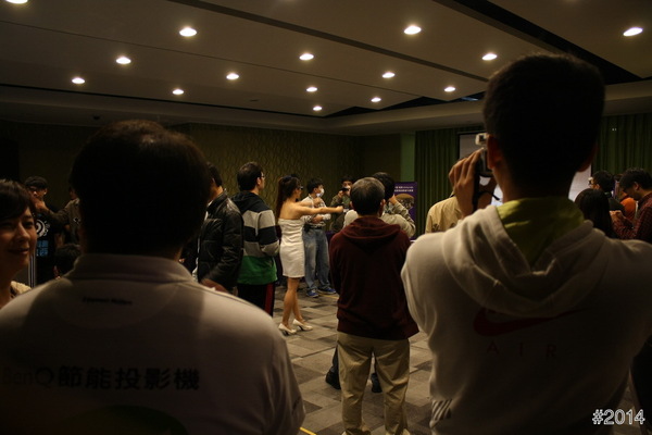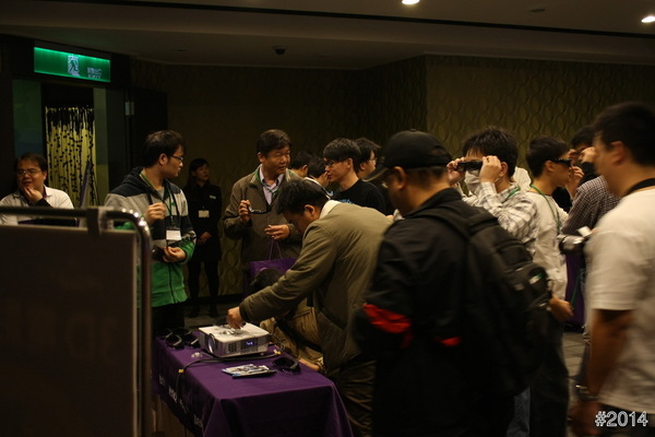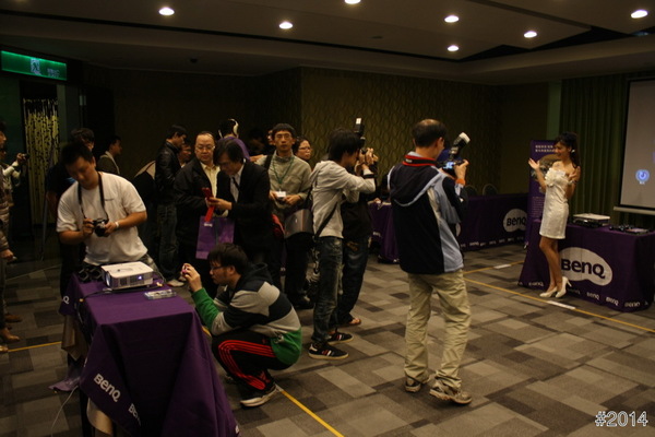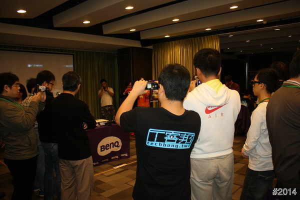 舞台正前方也放了一台 BenQ W1070,同樣有網友開始仔細的研究。