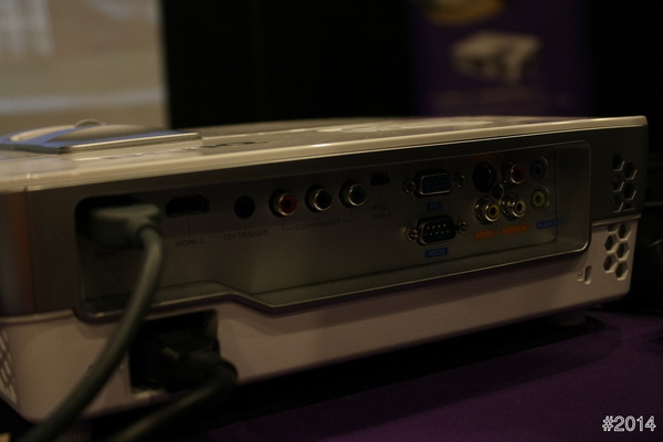 W1070後面的連接埠相當多!包括了Mini USB 連接埠、D-Sub連接埠、RS232控制埠、S-Video輸入、混合視訊輸入、音訊輸入插孔、兩個HDMI連接埠、12V TRIGGER輸出端子、色差視訊輸入。
