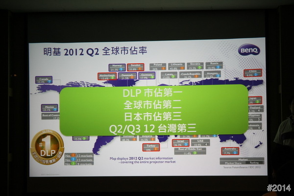以 DLP 來說,是市佔第一、全球第二、日本第三、台灣第三。