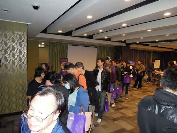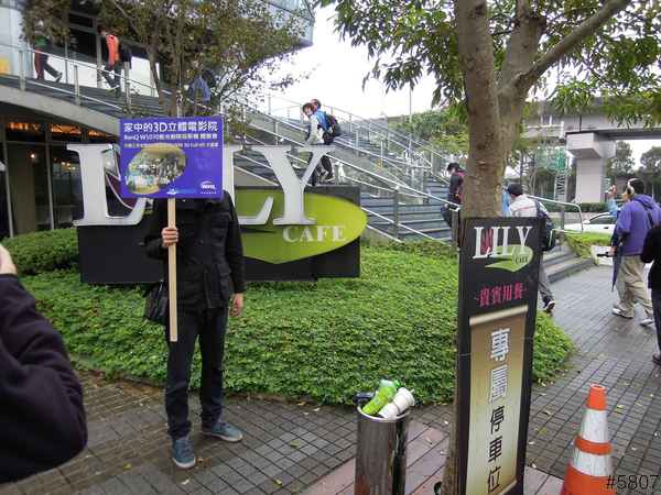 科技主辦單位工作人員拿牌指引進去莉蓮會館