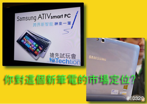 三星的研發實力在3C產品在這幾年全世界大家都有目共睹,不論是在稱霸全世界的智慧型手機市場,或者是在相機,筆電以及平板市場都占有舉足輕重的地位。今天這場體驗會則是三星打算在今年年底攻占筆電與平板雙市場的重點產品,這台Samsung ATIV smart PC還未推出上市就搶先在T客邦這個平台讓我們網友搶先體驗,加上同步也在台灣今年最後一場資訊展展場上先熱身,可見得三星對於這個產品的重視。