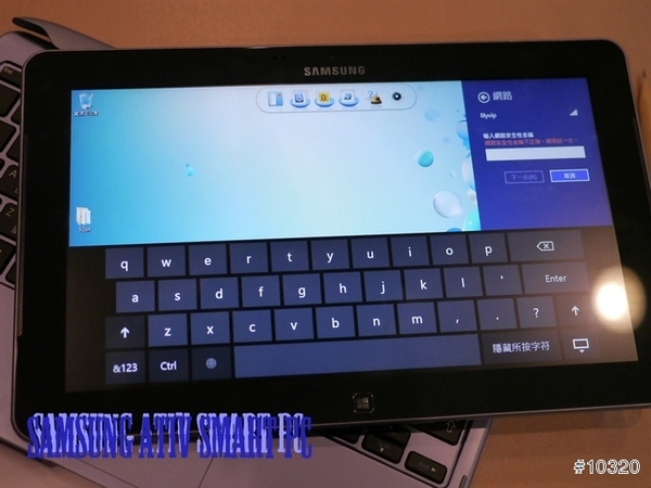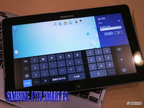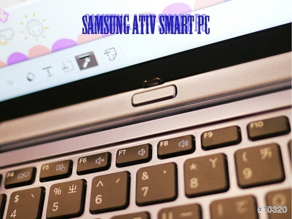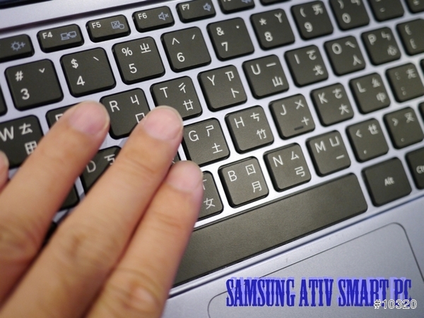 Samsung ATIV smart PC本體的厚度只有9.9mm,重量僅有700g,根本就只是一台10吋以上平板的規格,在手持上不會感受到困難,但是說真的700g久持還是會痠,以我手持過重達600g 的ipad2玩樂的經驗是這樣的。結合鍵盤底座闔蓋之後整體的厚度增加到約20mm,大概就類似一般輕薄筆電的厚度,重量1.45kg則甚至比一般輕薄型筆電還輕一些。Samsung ATIV smart PC的鍵盤是巧克力鍵盤美觀,打字觸感也頗佳,不過鍵盤的按鍵數無法跟一般PC的完整鍵盤比,方向鍵受限於空間大小設計也偏小,不過基本上該有的按鍵都有。