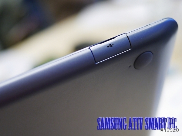 Samsung ATIV smart PC內建11.6吋解析度1366x768 pixels 16:9寬螢幕,對於windows 8系統分割視窗的使用上很方便,看影片時的感受也是加分。雖然解析度只有1366x768 pixels,但在這個價位帶是可以理解的。這塊支援5點觸控的螢幕它支援Super Bright 技術,亮度可達到400nit,在外使用時既使有陽光也不大需要害怕還是能看到螢幕的內容。Samsung ATIV smart PC內建硬碟容量是64GB SSD,其實以一台完整功能筆電來說容量稍不足,不過Samsung ATIV smart PC連接埠在鍵盤上有兩個usb 2.0,在本體上也有micro USB以及 micro SD卡的支援,在記憶卡與外接行動碟的支援還是可以彌補Samsung ATIV smart PC內建儲存空間的不足。