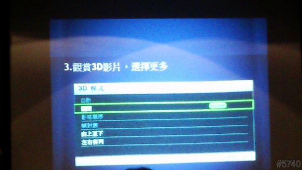 ▼觀賞3d影片可以選擇多種模式(自動、關閉、影格順序、偵封裝、由上至下、左右並列),圖片很模糊請見諒