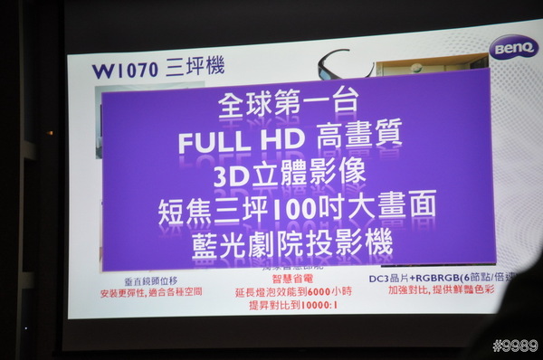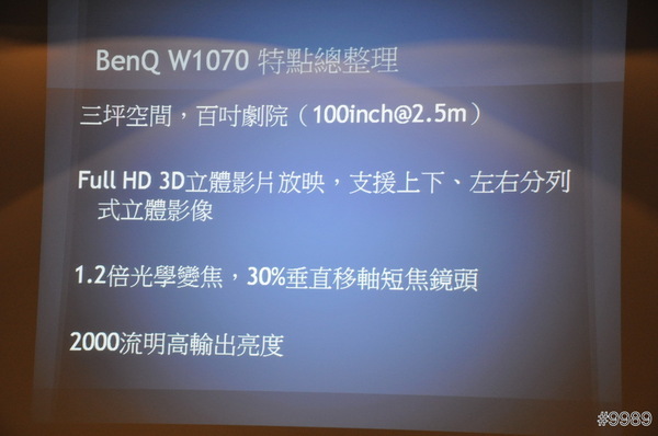 這台Benq的W1070後,一整個改觀,現場播放的變形金剛3呈現出來的3D效果很棒,簡直不輸給電影院,音效部份W1070有內建喇叭,但是最好還是搭配其他音響設備效果較好,還有3D眼鏡一隻真是不便宜,希望可以再降價。最感興趣的就是短焦投影,在這麼短的距離就能投射出如此大大畫面,對於居家空間較小的人來說,真是一大福音!
