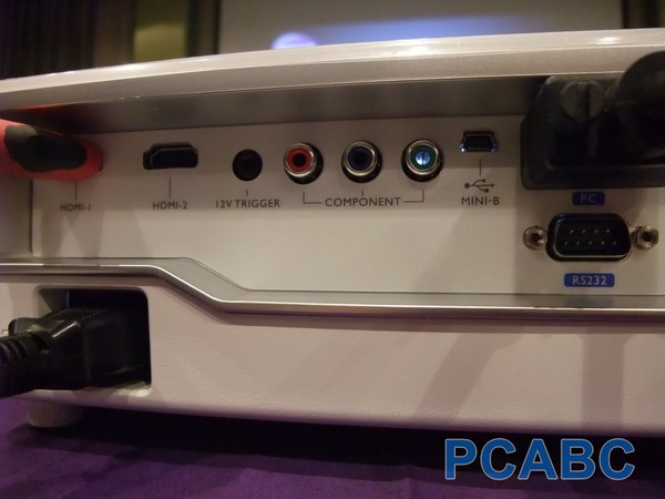 由左至右依序為HDMI-1、HDMI-2、12V的控制孔、色差端子(紅藍綠)、
