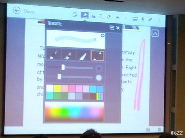輸入時,有4種筆觸可以選擇,分別是鋼筆、毛筆、鉛筆、螢光筆。還可以選擇大小跟顏色。