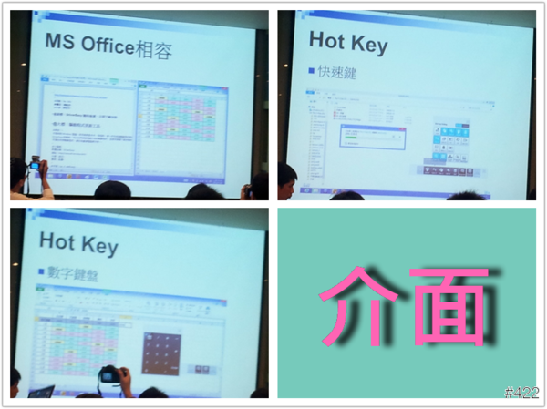 介面:既然是使用Windows 8作業系統,對Office檔案的相容性一定沒有問題。Hot Key的好處就是再沒有接上鍵盤時,還是可以享受快速鍵方便,還有數字鍵的功能。