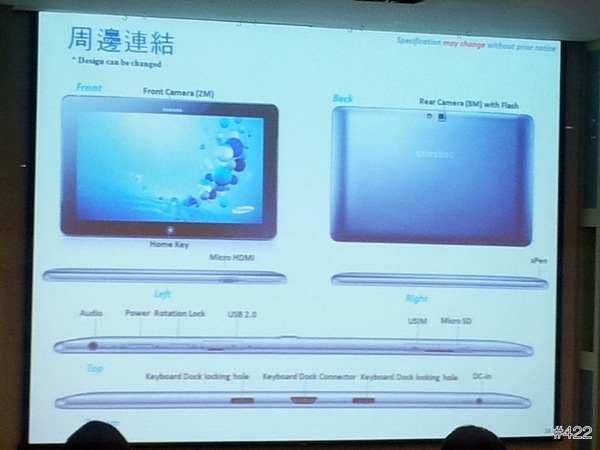 ◆Samsung ATIV smart PC 使用11.6 吋 16:9 的寬螢幕、有 3 個 USB 插孔、1 個 microSD 插孔、前鏡 800 萬像素 + 後鏡 200 萬像素的雙相機配置,使用時間可以長達14.5個小時