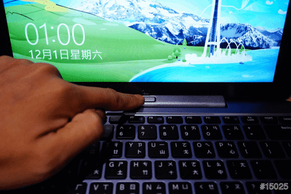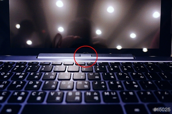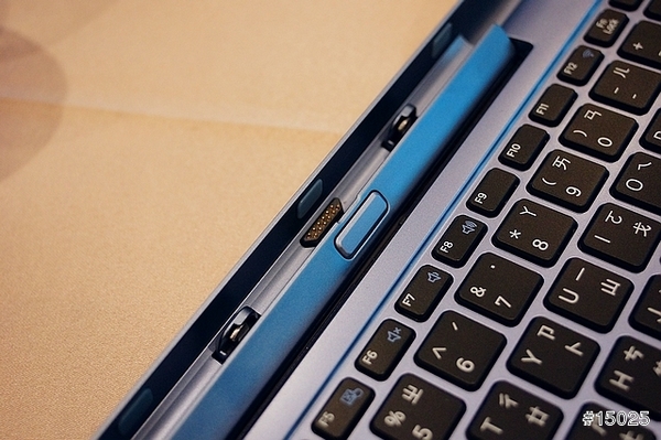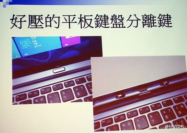 ▼在中間有一顆分離按鈕,按一下再往上順勢一拉,就可以將螢幕跟鍵盤分離