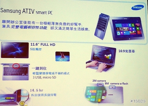▼Michelle:三星ATIV smart PC,具備11.6" FULL HD螢幕,而且可以平板跟筆電輕鬆變換,更可以滿足跟微軟電腦系統的相容性需求!