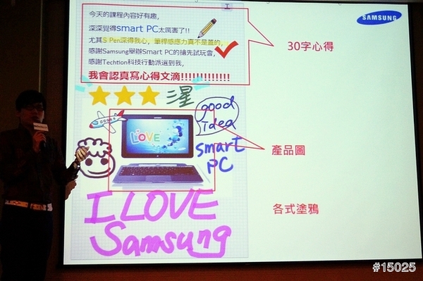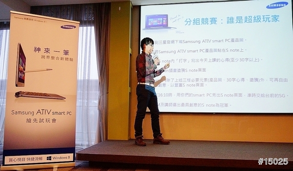 在專家詳細解說後,接下來主持人宣布將會來場刺激的分組競賽,比賽內容就是利用這台三星ATIV smart PC,寫出今天聽講的心得及特色,而且還要善用SPEN功能!!