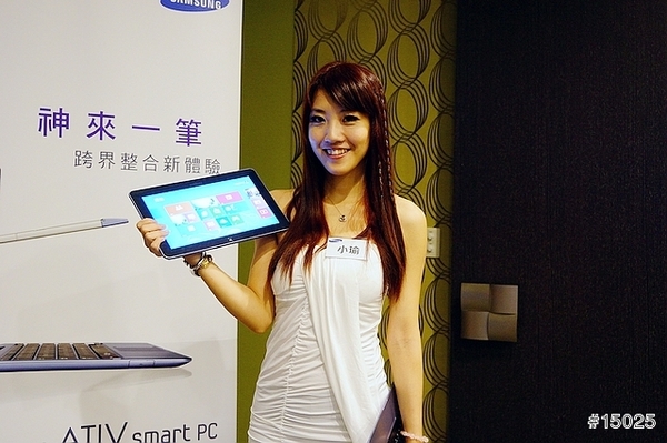 ▼美麗的SHOWGIRL正拿著Samsung ATIV smart PC展示