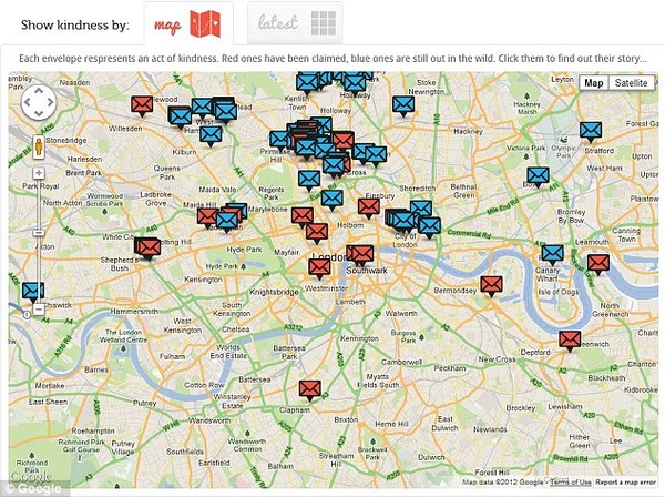 ▲藍色的信封是還沒被找到的,紅色的信封則是已經被發現了。