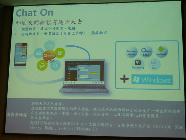 5.日前在電視強力播放的廣告Chat on也有Bundle進來,不管用手機還是ATIV Smart PC讓你和好朋友們一路聊到天荒地老.
