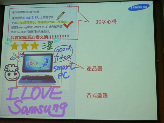 當天題目是:下載產品圖檔,並寫下使用心得和你的創意塗鴨,例如,"Smart PC我愛你,你是我的Mister Right….."之類甜死人又不用償命話可獲得加分.