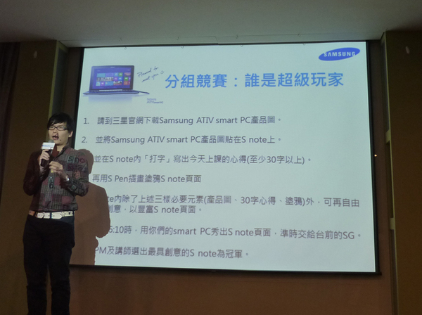 當天的主持人是T客邦最受歡迎,又高又帥的Johnny做開場,今天的主角Samsung ATIV Smart PC,光看命名就覺得深具創意,ATIV指的是Art of Technology, Inspiration of Versatility等字頭的縮寫,意為"藝術與頂尖技術的結合之美",ATIV也是拉丁文VITA活力一字的反向字。