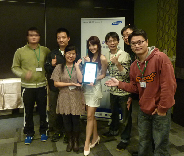 作戰策略是先由高手完成50%,再由各個成員分別寫下對smart PC的感覺,全組成員再拿著作品和Show Girl合照.