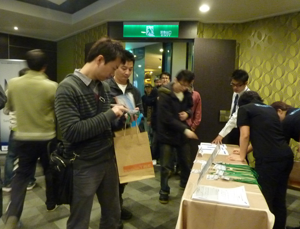與會者魚貫入場,並領取紀念品,一如往例,有PC home雜誌一本,發文規則以及產品簡介.