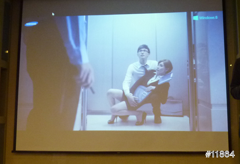 話說從事服務設計的嬌嬌女上司與下屬一起到客戶公司做簡報,沒想到竟受困於電梯之中,然簡報在即,女上司心急如焚,如同熱鍋上的螞蟻,男下屬靈光一閃,提醒用ATIV Smart PC視訊會議功能,直接在電梯裡簡報便可克服時間和空間的問題了.