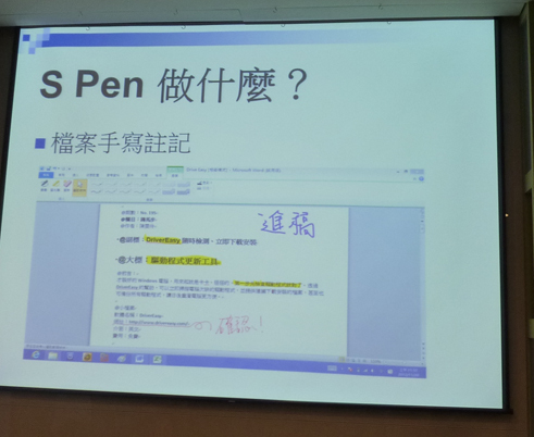 2.S pen 對每天要看一堆文字的編輯來說,更是一項利器,編輯可以直接在寫好的稿子上進行註記,並寫下意見,以方便編輯,重點是原稿還不會被破壞.