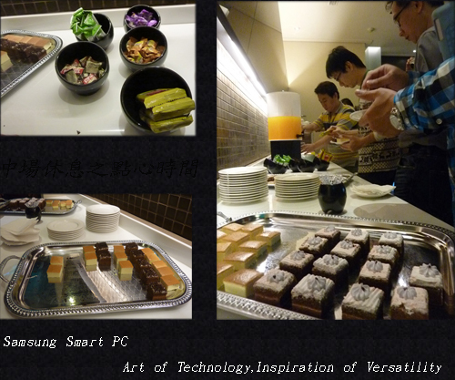 中場休息的點心,向來是主辦單位的德政.咖啡、紅茶和蛋糕,產品,美女和奬品,有吃有拿又有得玩,哈~哈真是天上人間。