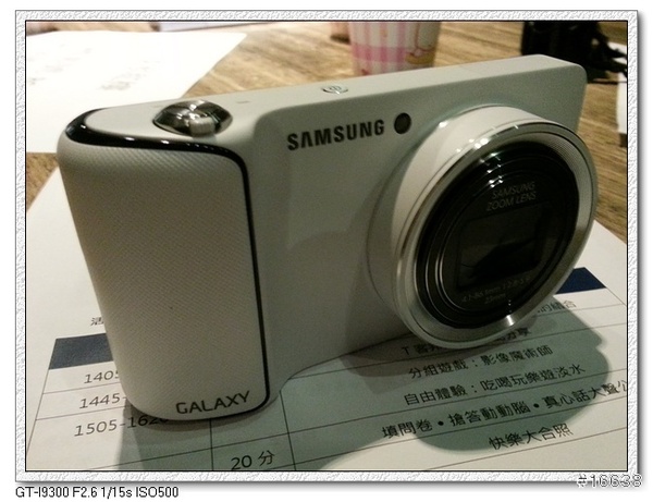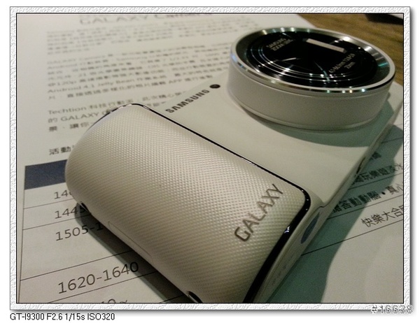 非常高興有機會能體驗到Galaxy Camera,雖時間關係導致無法完整體驗小弟想了解的部分,但也充分感受到Samsung設計這台相機的誠意,Galaxy Camera照片質素也算是小弟可以接受的範圍內,而當天體驗時也利用拍照的空檔不斷的透過藍芽將照片傳輸到小弟的手機上(同時有持續拍照),完全沒感受到這種多工運作時對拍照產生的不便(這也是小弟想確認的地方),Android相機帶來完全不同的拍照視野與體驗,相信絕對是值得購入的一台智慧新生活相機啊~~