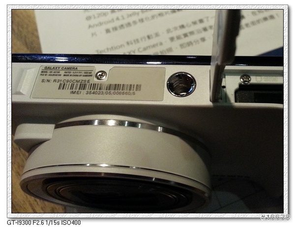 6. Galaxy Camera亦有提供腳架孔,而這台從產品標籤貼紙上看得出來是MIC的~