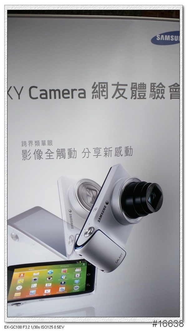 首先不免俗套地感謝Samsung與T客邦讓小弟有機會參加搶先體驗Galaxy Camera的活動,雖然當天下著大雨且也讓小弟錯失了前半場精彩的介紹,但到達會場後,剛好接上下半段的分組實機體驗活動,也非常幸運地遇上非常Nice的組員,一同拍了不少張照片~