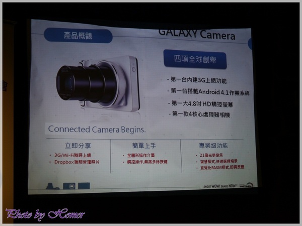 趁此空檔,大家拼命的把玩桌上的Galaxy Camera,而此時,主持人也非常的貼心,為了讓接下來的介紹大家都能有效的吸收,因此後續的整個介紹過程,相機是先回收回去的。