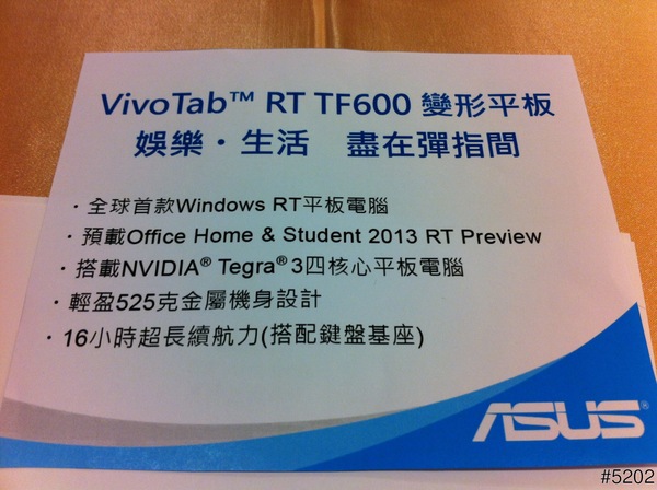 接下來看到這個全新世代的產品,Windows RT 作業環境的 ASUS TF600T