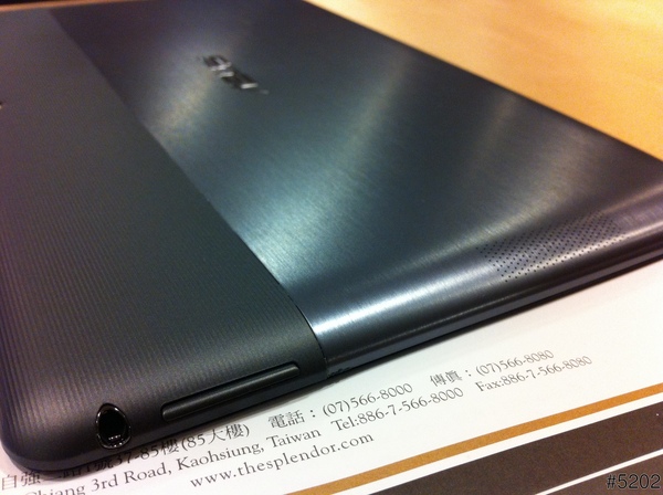 上方是大大的nexus logo 下方則是 ASUS logo,可以順便看到下面那一條是喇叭喔~