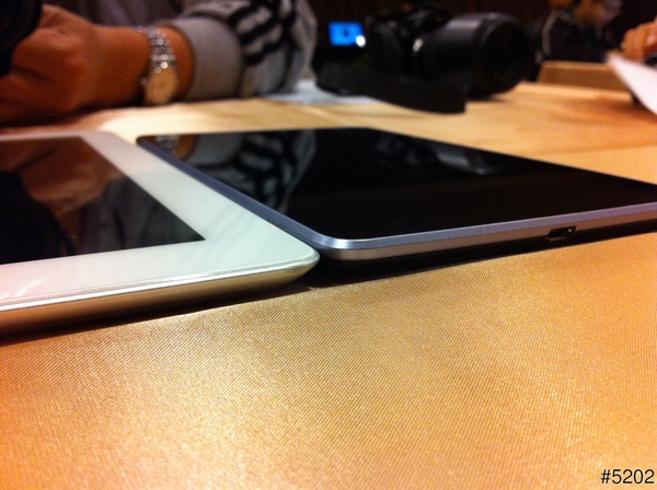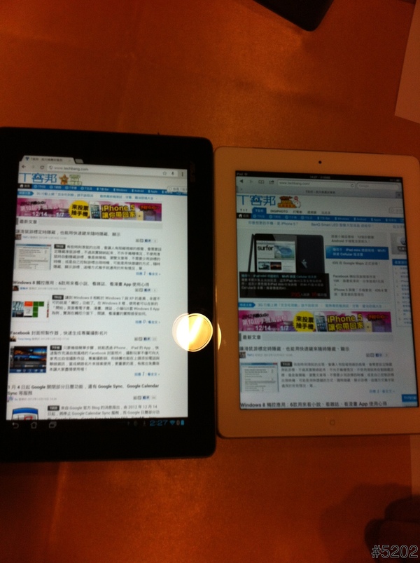 極致輕薄,左 ASUS TF700 右 New iPad,比 iPad 更薄啦!