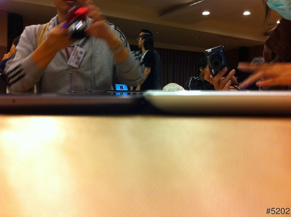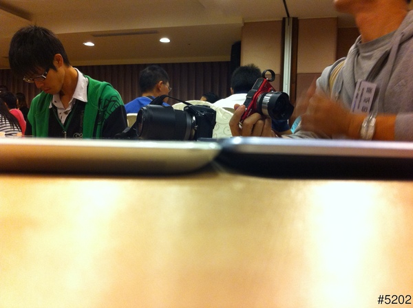 接下來進入布置得井然有序的會場,找了個空位坐下,是第四組。桌牌上可以看到今天的三大主角!這次一樣是用 iPhone 4 來拍照,傷眼請鞭小力...