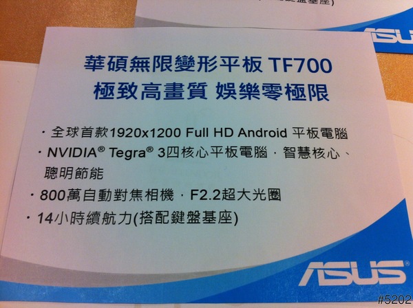 事不宜遲,馬上就拿起桌上的實機來東摸西摸一番,他就是今天的重量級狠角色: ASUS TF700T