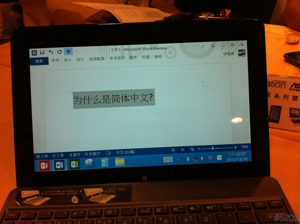 很奇怪的是,用注音輸入跑出來的是簡體中文啊,工作人員說等正式上市之前會回報給微軟做改進。