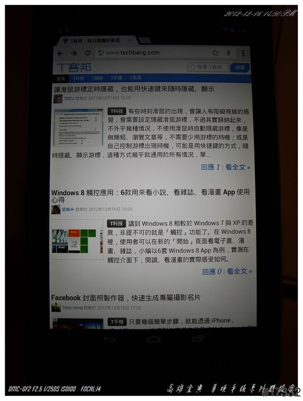 自動對焦的速度與清晰度相當好,雙手拿著平板時右手大姆指剛好可以做縮放的動作