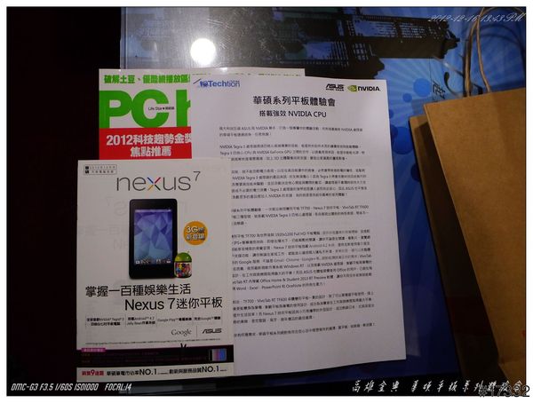 裡面有當期的PCHOME雜誌及這次體驗會產品TF700、TF600及Nexus7的簡介