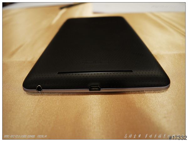 Nexus7的外表相當的簡潔,背面下方有ASUS的LOGO及喇叭孔