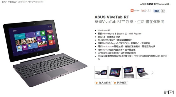 體驗的平板電腦分別是ASUS VivoTab RT TF600T