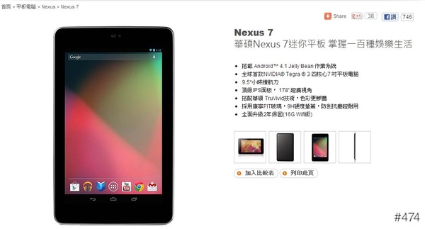 Nexus 7是Google的第一台平板電腦產品,由華碩代工生產,由於是Google親生的所以可以最快獲得最新版本的作業系統更新