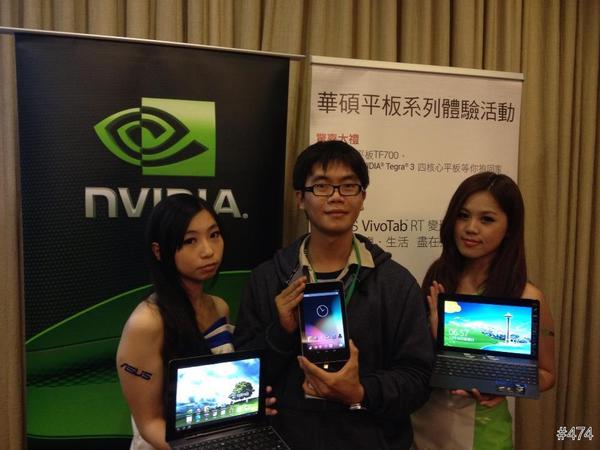 到場簽到後與分別身穿華碩與Nvidia衣服的兩位ShowGirl合照打卡