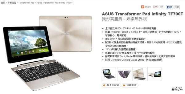 其中TF700T是搭載了FULL HD高畫質螢幕的第四代變形金剛平板