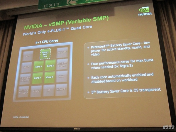 內容上比較偏向介紹Tegra 3 4-PLUS-1 的省電效果與遊戲效能的提升。