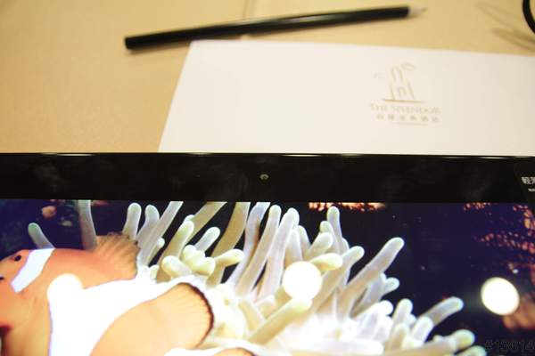 螢幕的最上方有 200 萬畫素視訊鏡頭,還有光源感應器,可自動感應光源調整螢幕亮度...