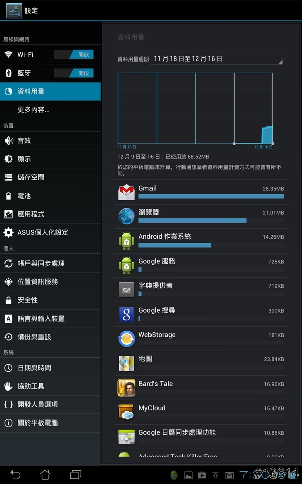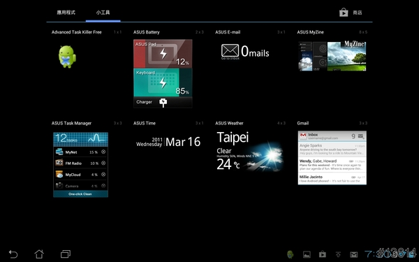 小工具應用程式,內建的跟之前TF201、TF300變形平板,看到的幾乎都差不多...